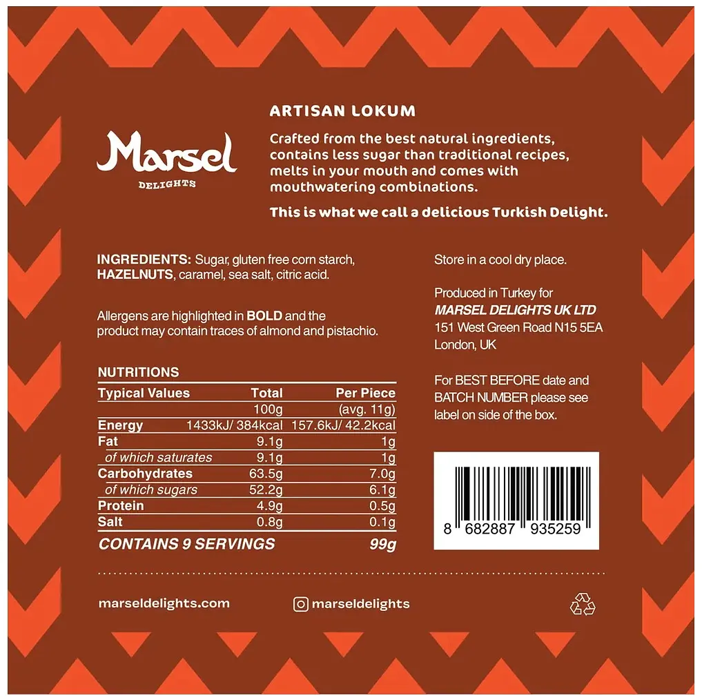 Unsere Zucker-Politik: Bei Marsel achten wir sehr auf den Zuckergehalt. Unsere Rezepte enthalten weniger Zucker als traditionelles Turkish Delight, wobei der Fokus darauf liegt, eine ausgewogene Süße zu erreichen, die die natürlichen Aromen jedes Lokums ergänzt, statt sie zu überdecken.