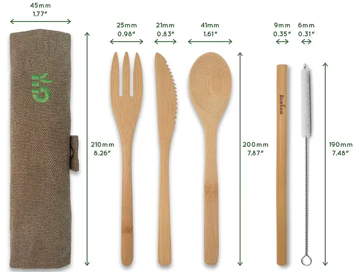 Das tragbare Bambusbesteckset ist leicht und kompakt. So kannst du es überall hin mitnehmen. Ein Set im Auto, in der Tasche oderim Büro ermöglicht es dir, bereits in vielen Situationen Einwegbesteck abzulehnen.