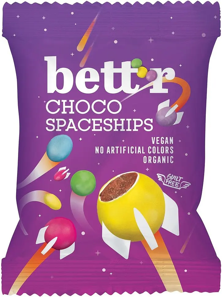 Feinste Bio-Schokolinsen von bett'r mit buntem Überzug aus knackiger Zuckerglasur.