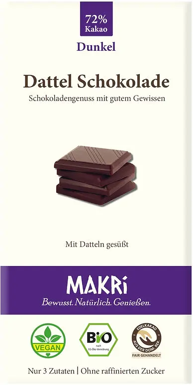 Tafel Dattel Schoko Dunkel Bio von MAKRi– Von Naturkraft – Genuss, der verbindet.
