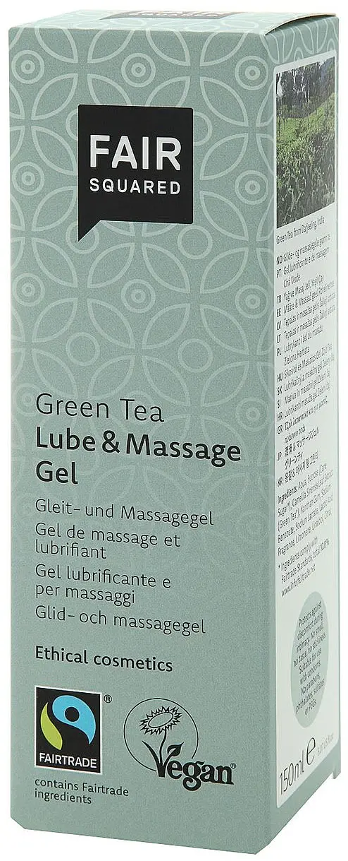Fair Squared Lube- und Massagegel mit fair gehandeltem Grüntee.