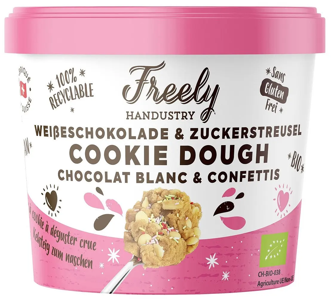Freely Handustry Bio Veganer Keksteig Weisse Schokolade & Streusel - Leckerer Kecksteig zum naschen.