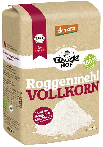 Roggenmehl Vollkorn Demeter von Bauckhof. Dieses Roggenvollkornmehl wird von Bauckhof's Müllerteam vermahlen und enthält