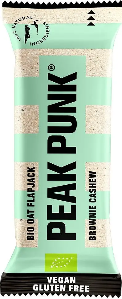 Der Organic Oat Flapjack Brownie Cashew von Peak Punk versorgt dich mit der nötigen Energie. Ein schokoladiger Flapjack, der nicht allzu süss schmeckt.