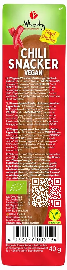 Wheaty Bio Spacebar Chili Snacker ist ein veganer Snack auf Weizeneiweissbasis.
