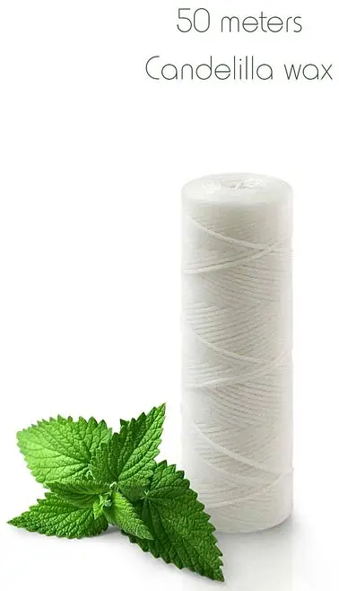 Ein pflanzliches Wachs, das durch Auskochen der Pflanze gewonnen wird. Es ist ein nicht gelierendes Verdickungsmittel und Filmbildner mit schützenden Eigenschaften und damit das perfekte Wachs, um die Zahnseide zu schmieren und sie leicht durch die Zähne gleiten zu lassen.