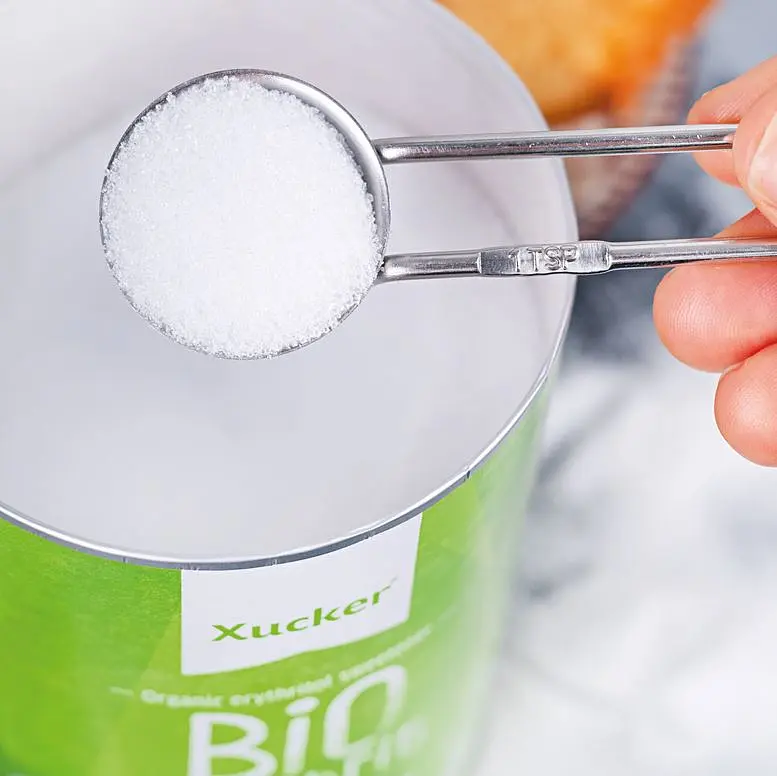 Xucker in der Anwendung Für die Herstellung von Konfitüre ist es weniger geeignet, weil es dort auskristallisiert. Für die Herstellung von Gebäck und Kuchen empfehlen wir, den Gewichtsanteil von Xucker Bio Erythrit 25 % nicht zu überschreiten. Mit Xylit im Verhältnis 1:1 gemischt ist Erythrit zum Backen sehr gut geeignet. Zu verwenden als Zuckerersatz: 1g Xucker Bio Erythrit = ca. 0,7g Zucker.