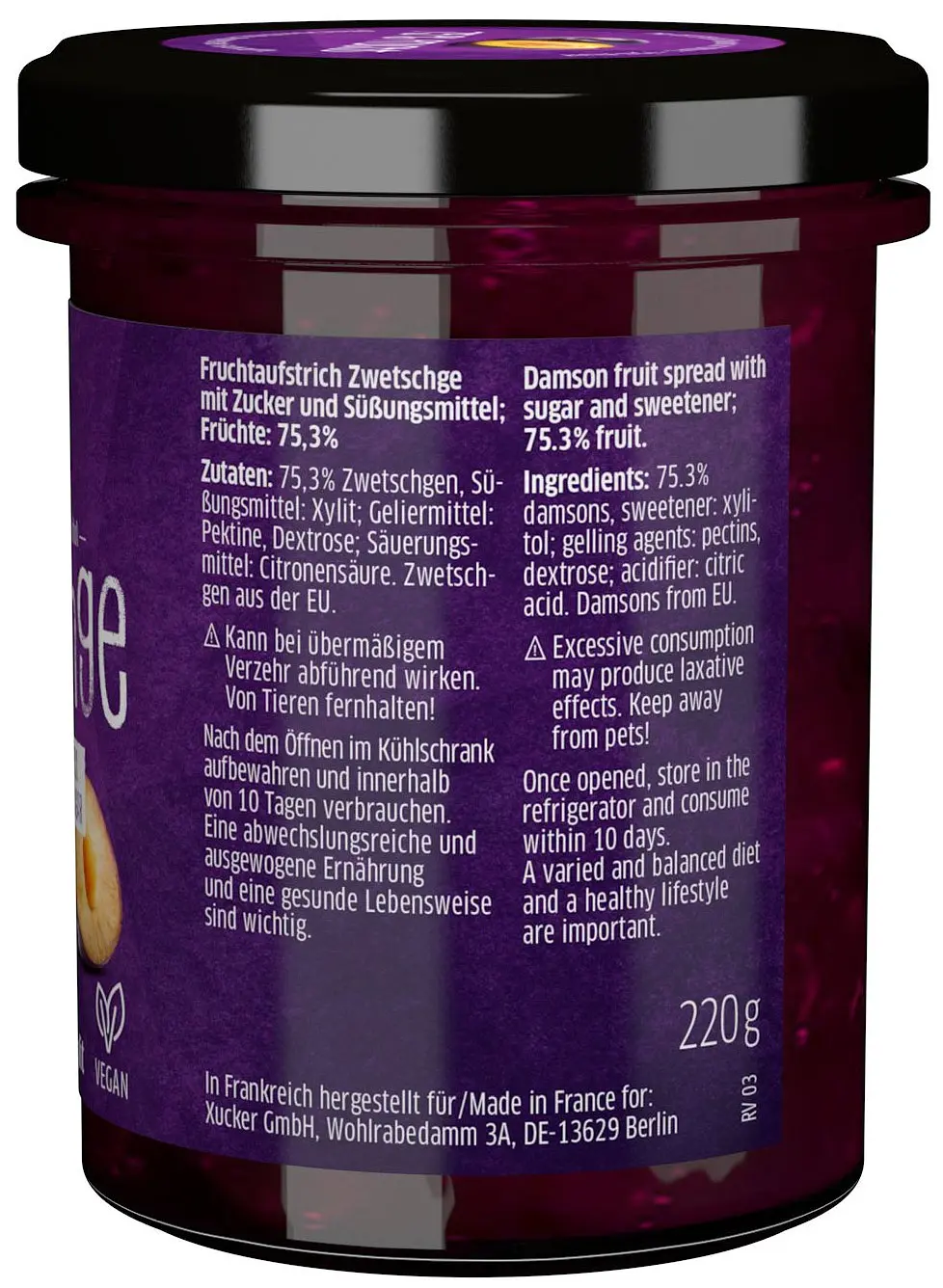 Zuckerarmer Fruchtaufstrich Zwetschgen (75.3% Frucht) von Xucker.