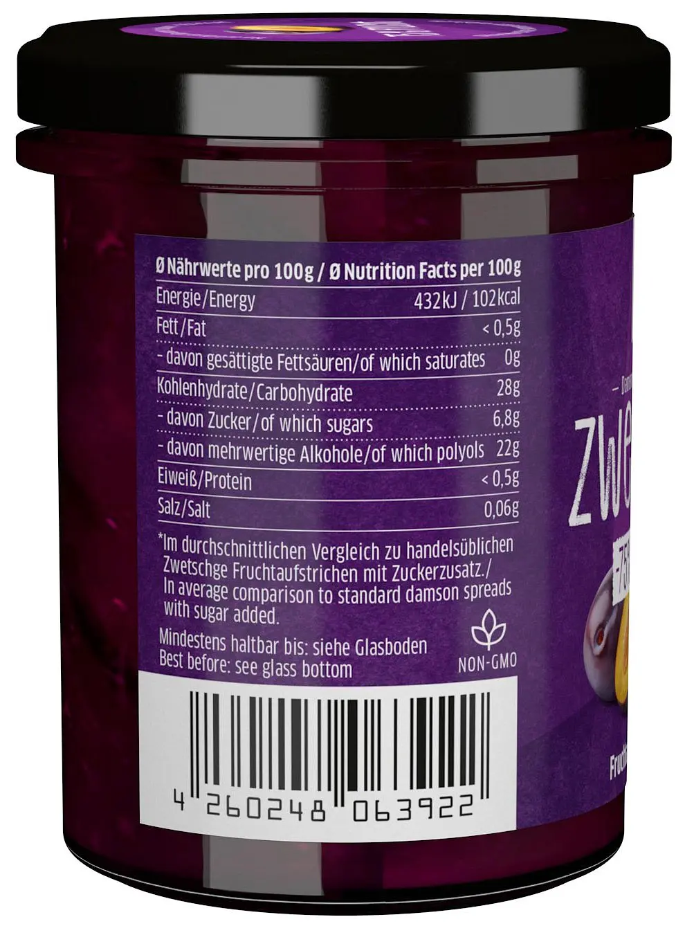 Der leckere, zuckerarme Zwetschgen-Fruchtaufstrich ist mit Xylit gesüsst. Er weist stolze 75.3% Fruchtanteil auf und erfreut die Herzen aller, die Zwetschgen lieben.