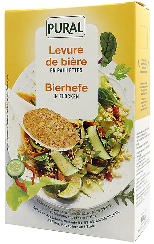 Savoury beer yeast flakes from Pural that can added to soups and stews or sprinkled over food.