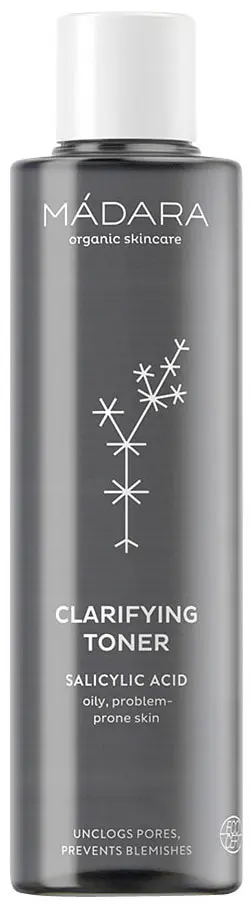 MADARA Clarifying toner Apply Clarifying toner AM and PM to clean skin with cotton pad or splash on with hands. Follow with MÁDARA moisturiser.