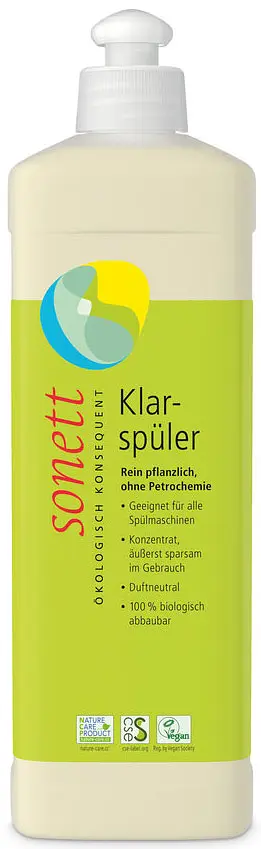 With Sonett Clear Rinse we have a product which achieves good results in the dishwashing machine – with ingredients that are purely plant-based, without any petrochemicals whatsoever.