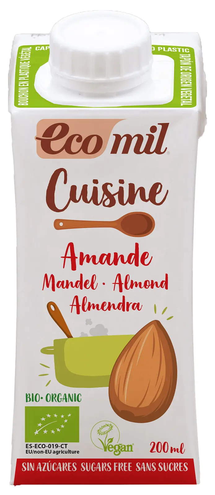 Ecomil Organic dairy-free almond cooking cream, alternative to dairy and soya single creams.