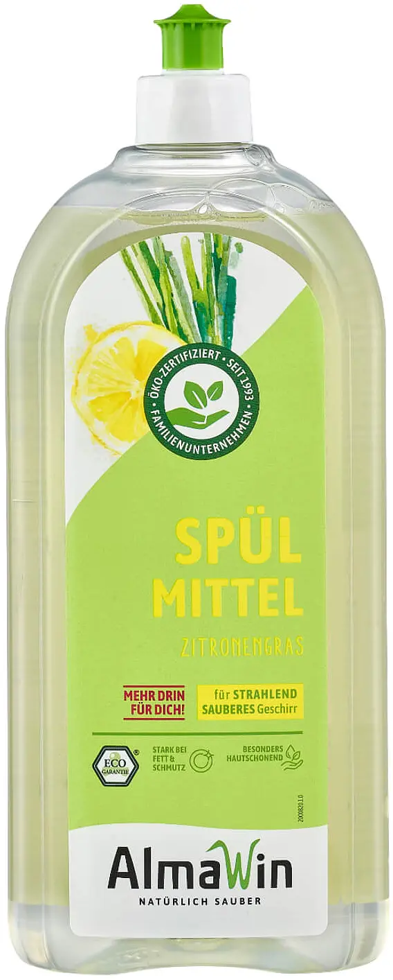 Washing Up Liquid Lemongras from Almawin has excellent fat and dirt dissolving and dispersing properties.