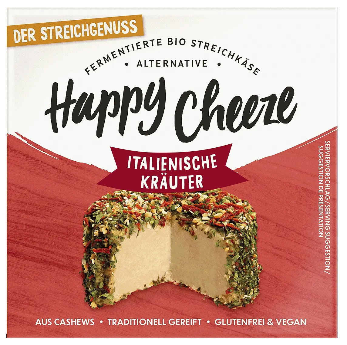 Made in Germany, Italien Herbes is a vegan alternative to cheese made of cashews. It mainly consists of fermented cashews from controlled organic farming. The fermentation with bacterial cultures makes this milk free alternative to cheese made of cashews incomparably melting and delicious.