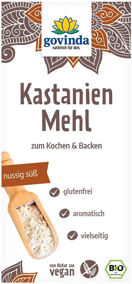 Govinda's chestnut flour is a great basic product for your pantry with which you can prepare fantastic meals, cakes, pancakes, breads or biscuits. Chestnut flour can be used as an alternative for wheat flour, is easily digestible and gluten free
