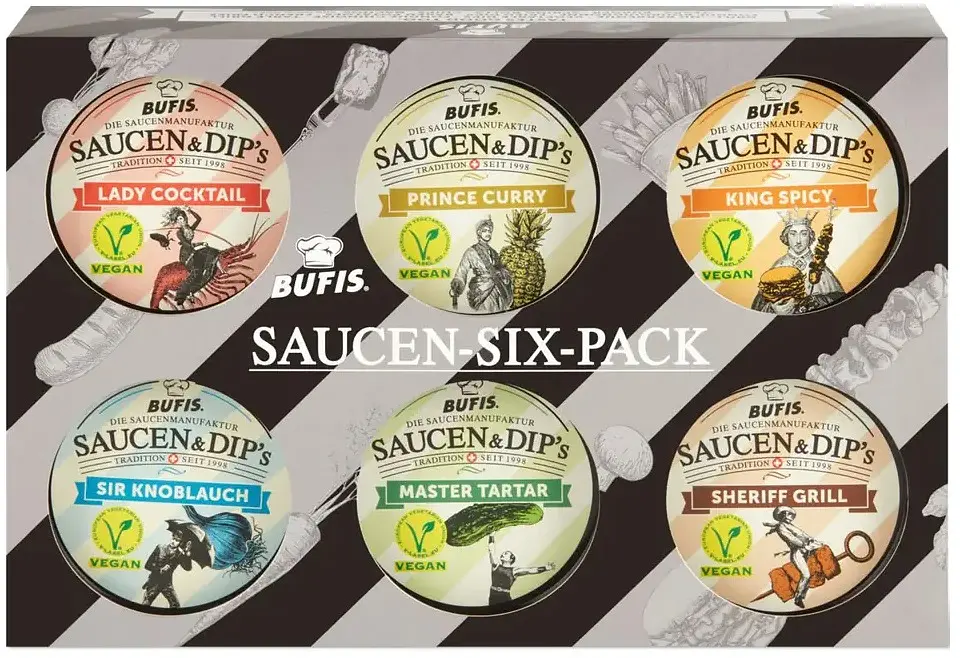 Give your barbecue evening a special touch with the Bufis Grill Set! This set includes six unique dips that pair perfectly with grilled vegetables, tofu, and other vegan delights.