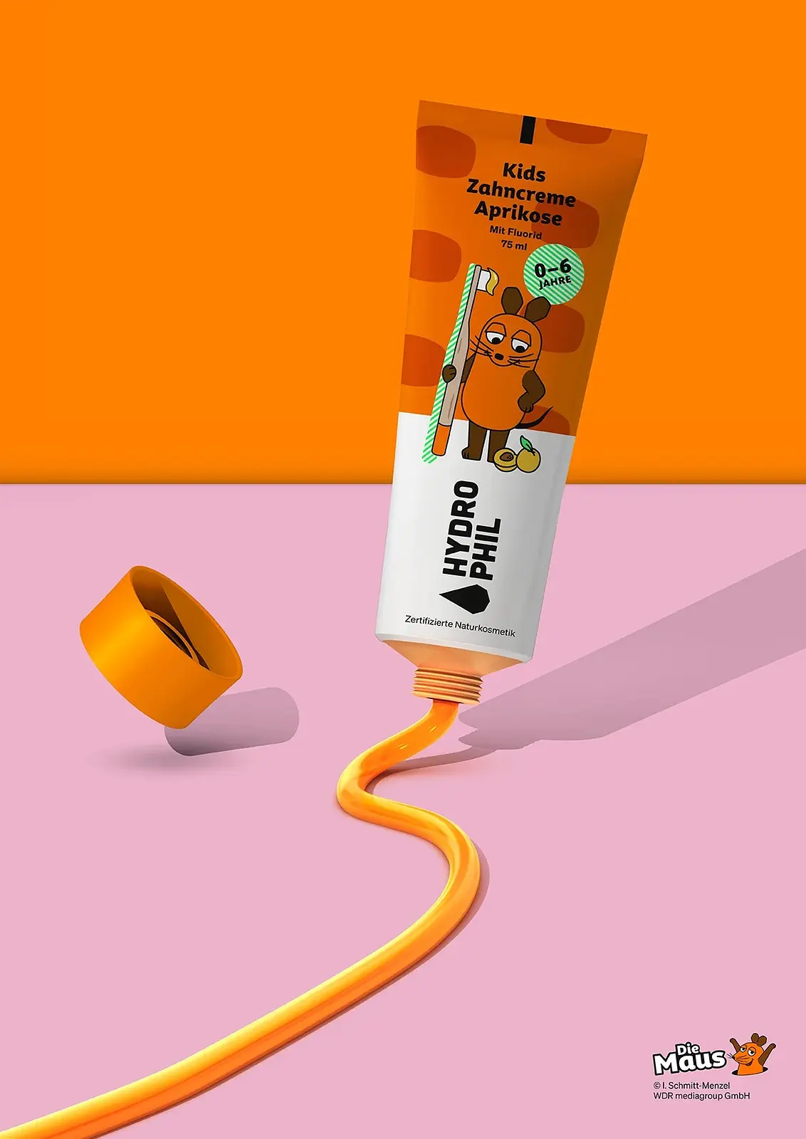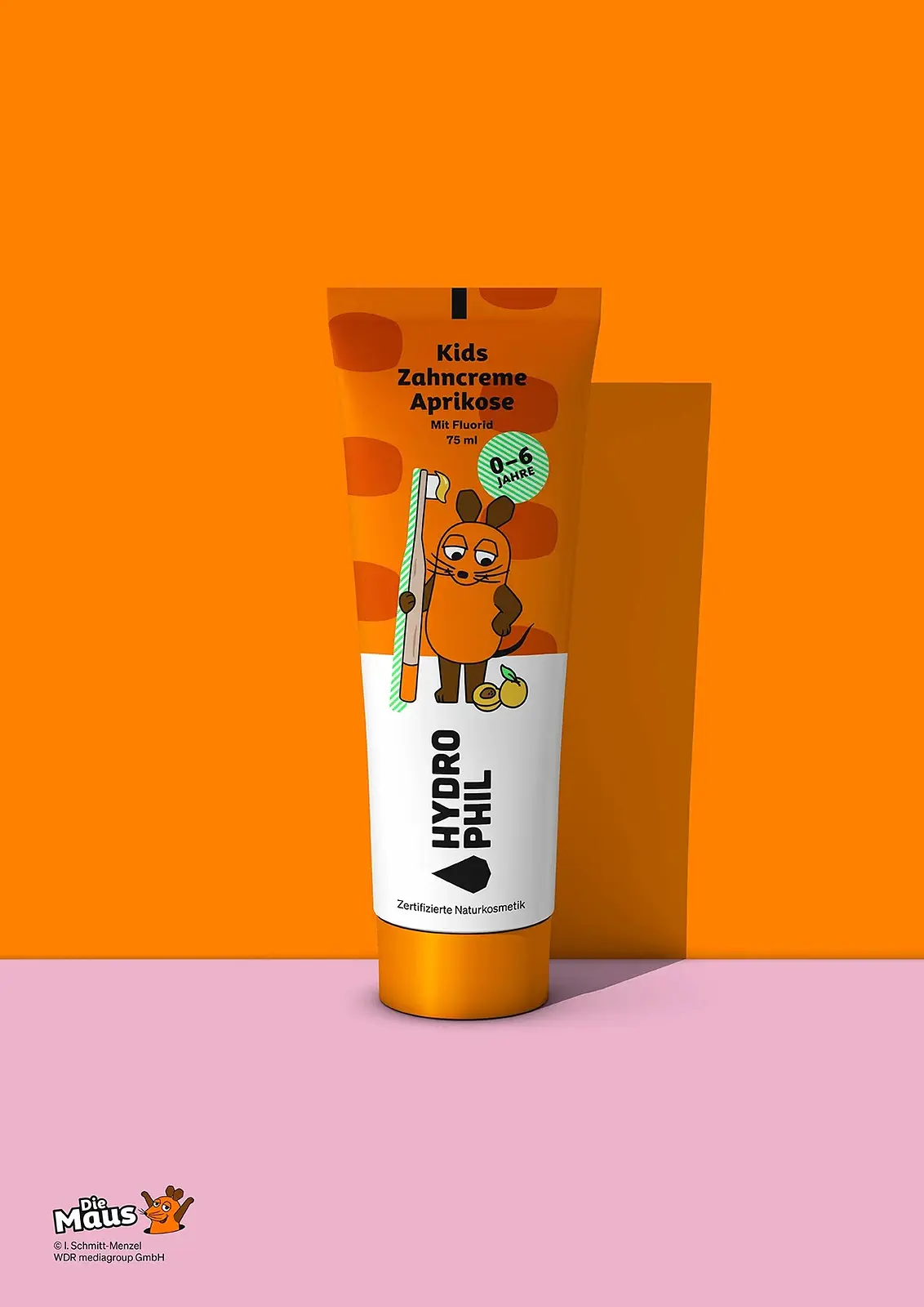 What is fruity, orange and tastes like apricot? The HYDROPHIL children's toothpaste for healthy and strong teeth! With its delicious apricot taste, the toothpaste is ideal from the first tooth. Depending on the dosage, it gently cares for milk teeth and permanent teeth, as well as the sensitive gums of children. The formulation specially developed for children's teeth with the medically recommended fluoride dose of 1000 ppm prevents tooth decay and gently cleans the not yet fully developed tooth enamel. Mild cleaning bodies ensure gentle and effective plaque removal.