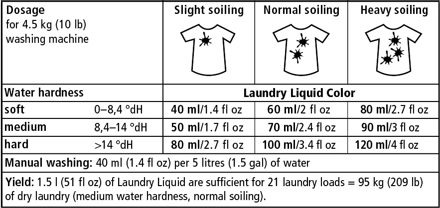 All washable coloured textiles made from cotton, linen, hemp, microfibres such as Softshell®, Goretex as well as fabric blends, from 30–60 °C (85–140 °F).