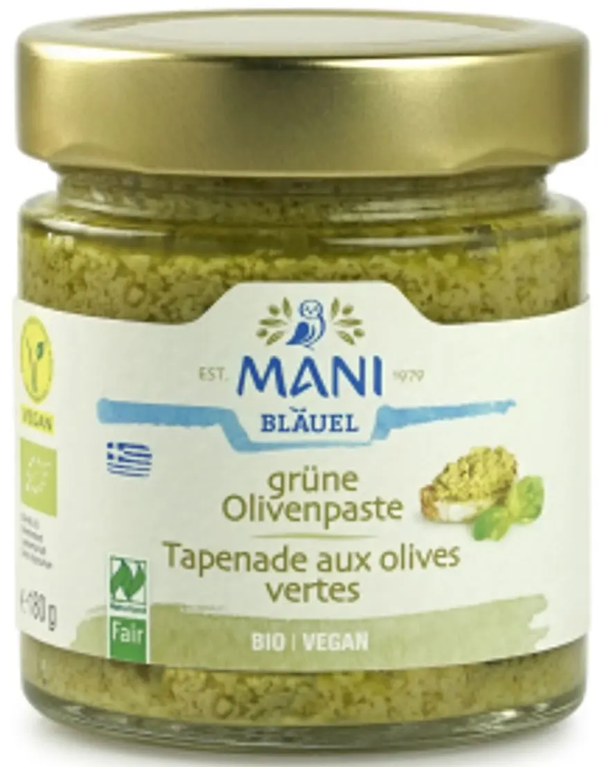 Mani Green organic olive paste from sunny Greece - Wonderful as a spread, in sauces and marinades.