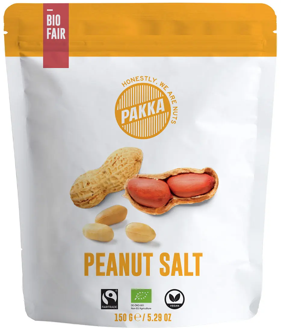 Pakka organic peanuts roasted without oil and salted with sea salt - ideal as a snack for in between, at parties or cozy evenings.