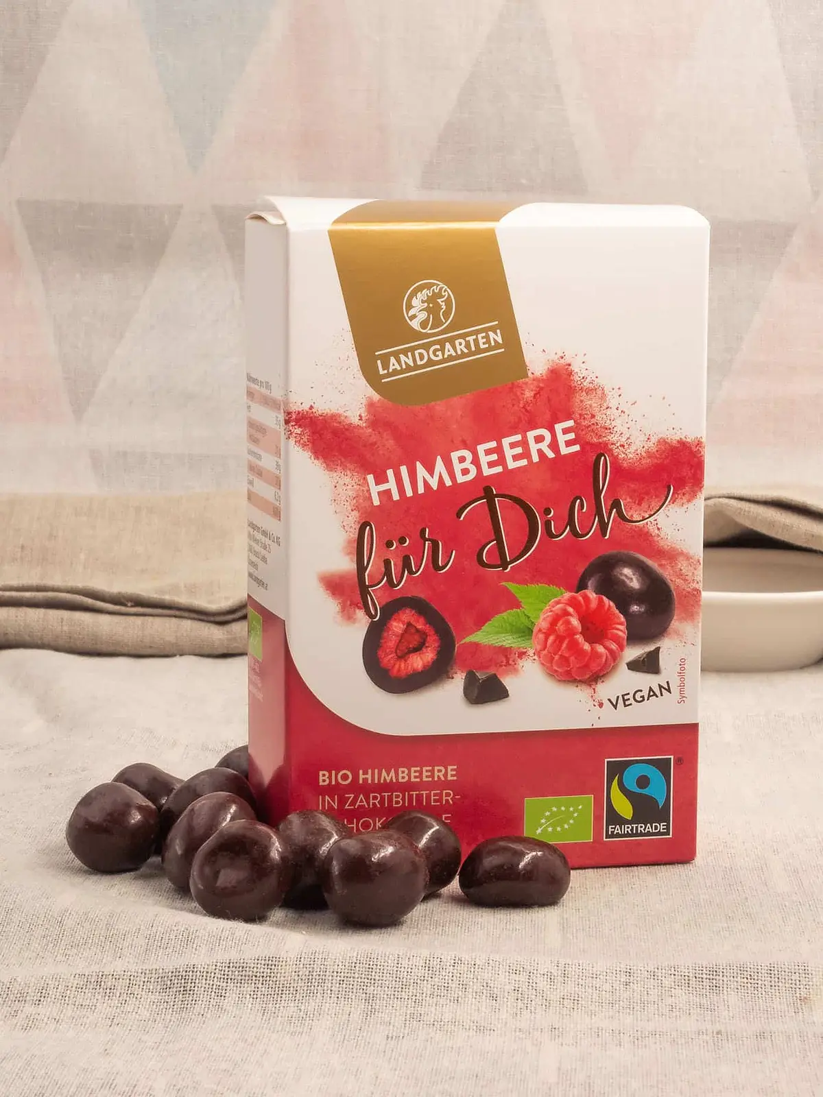 Embark on a unique taste journey. Experience the intense flavor of whole freeze-dried raspberries, wrapped in hundreds of delicate layers of dark chocolate. Dive with Landgarten “Raspberry for You” into a world of fine, slightly bitter organic Fairtrade chocolate and fruity raspberries – free from palm oil and gluten.