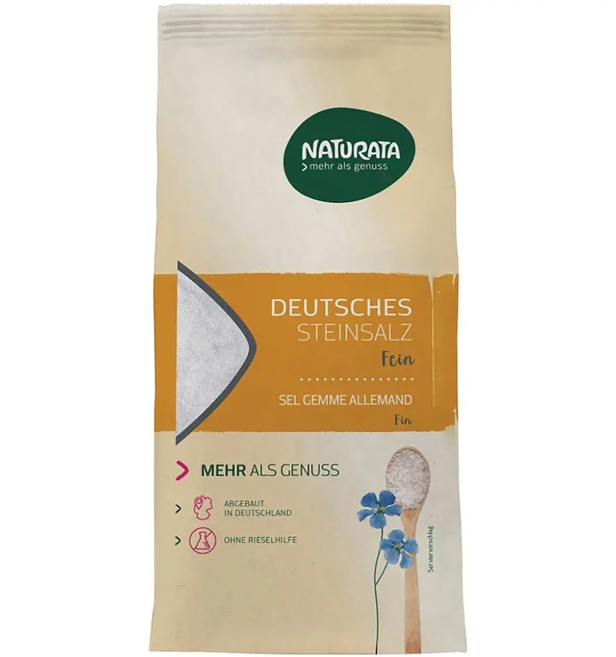 Fine German rock salt from Naturata is not refined or bleached and thus remains particularly natural. Due to a high degree of drying, the pourability is maintained and the salt does not clump, so anti-caking agents and anti-caking agents are not used.
