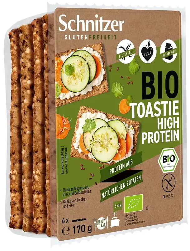 Gluten-free high-protein toastie by Schnitzer – pure protein power: natural, organic, and truly delicious!