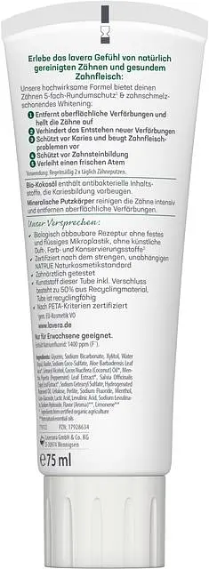 Sensitive Whitening toothpaste from Lavera - natural whitening that is gentle on tooth enamel.