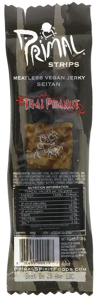 Meatless Vegan Jerky Thai Peanut by Primal Spirit – Flavorful, creamy, plant-based