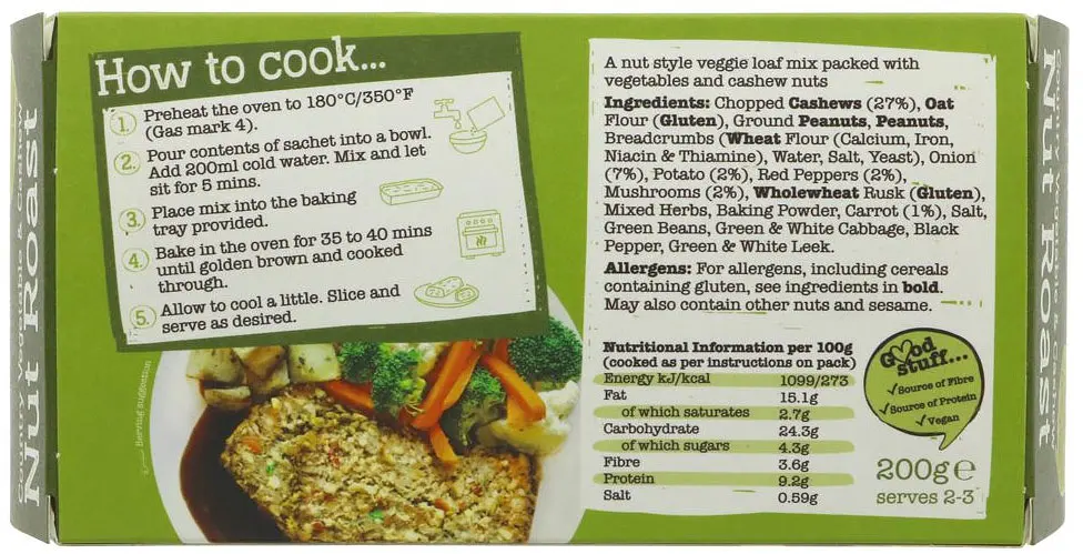 Presented in its own recyclable baking tray, this wholesome vegan Country Vegetable & Cashew Nut Roast Mix loaf is so easy to prepare. A hearty and rustic loaf with crunchy peanuts and cashews. This no-nonsense Nut Roast is bursting with flavour and 8 different types of vegetables