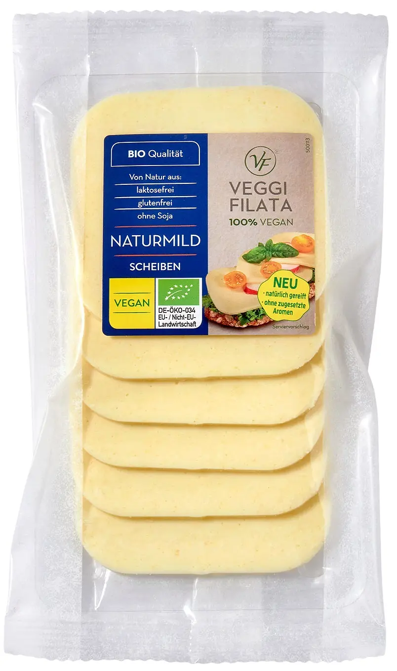 Organic VEGGI FILATA Nature slices - vegan cheese alternative for sandwiches, savoury crêpes or vegan cheeseburgers.