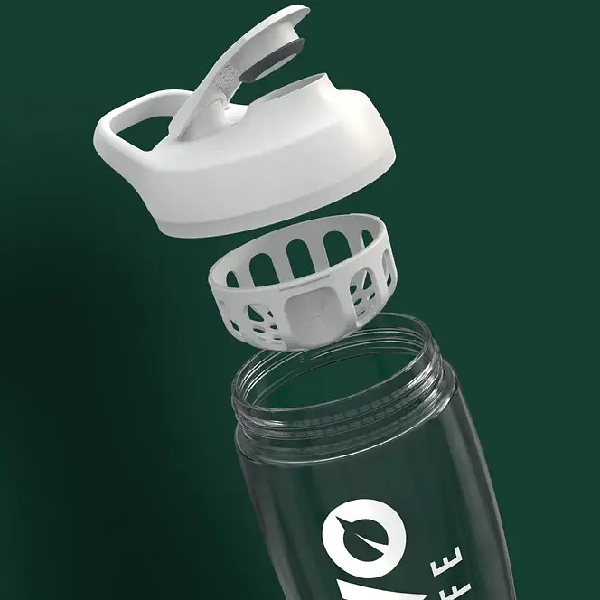 Durable, reusable protein shaker made of stainless steel with plastic lid