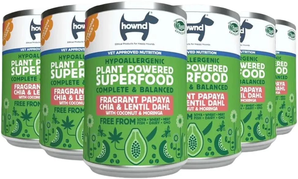 HOWND's wet food contains all the essential nutrients your dog needs, is hypoallergenic and a great food alternative for dogs on plant-based diets and those with meat, dairy or fish allergies.