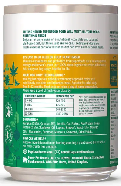 HOWND's wet food contains all the essential nutrients your dog needs, is hypoallergenic and a great food alternative for dogs on plant-based diets and those suffering from meat, dairy or fish allergies.