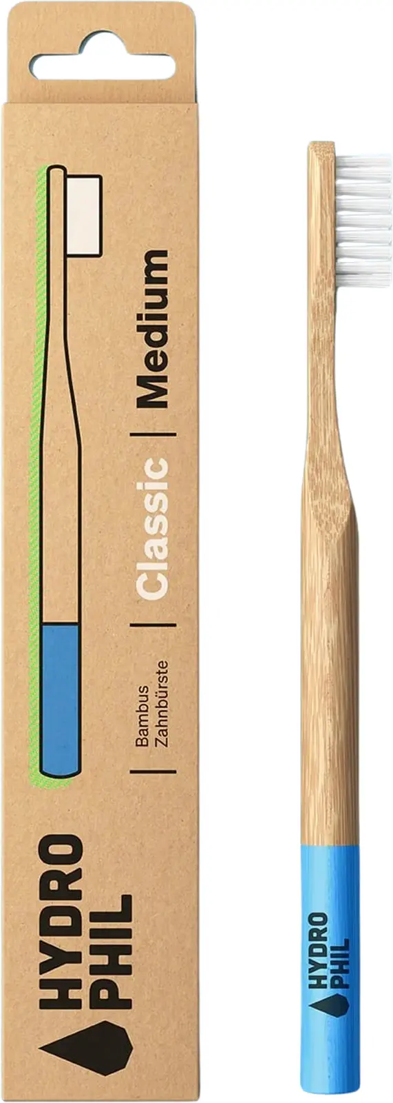 Notre brosse à dents HYDROPHIL Bamboo CLASSIC durable est un incontournable dans toute salle de bain. 100 % sans plastique. Elle existe en deux versions : avec un manche coloré « Atlantic Ocean » ou entièrement naturelle sans couleur.