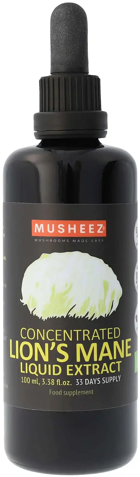 L’extrait liquide de Crinière de lion (Hericium) de Musheez est un extrait de champignon médicinal 100 % pur. Il s’agit d’un extrait concentré d’Hericium sous forme liquide – pratique, de qualité supérieure et facile à consommer. Complément alimentaire à base de champignon médicinal biologique.