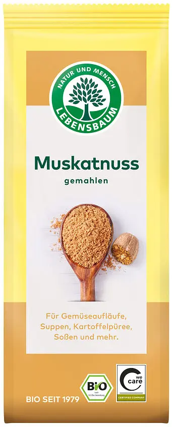 Muscade moulu Bio de Lebensbaum pour les casseroles de légumes, les soupes, les purées de pommes de terre, les sauces et plus encore.