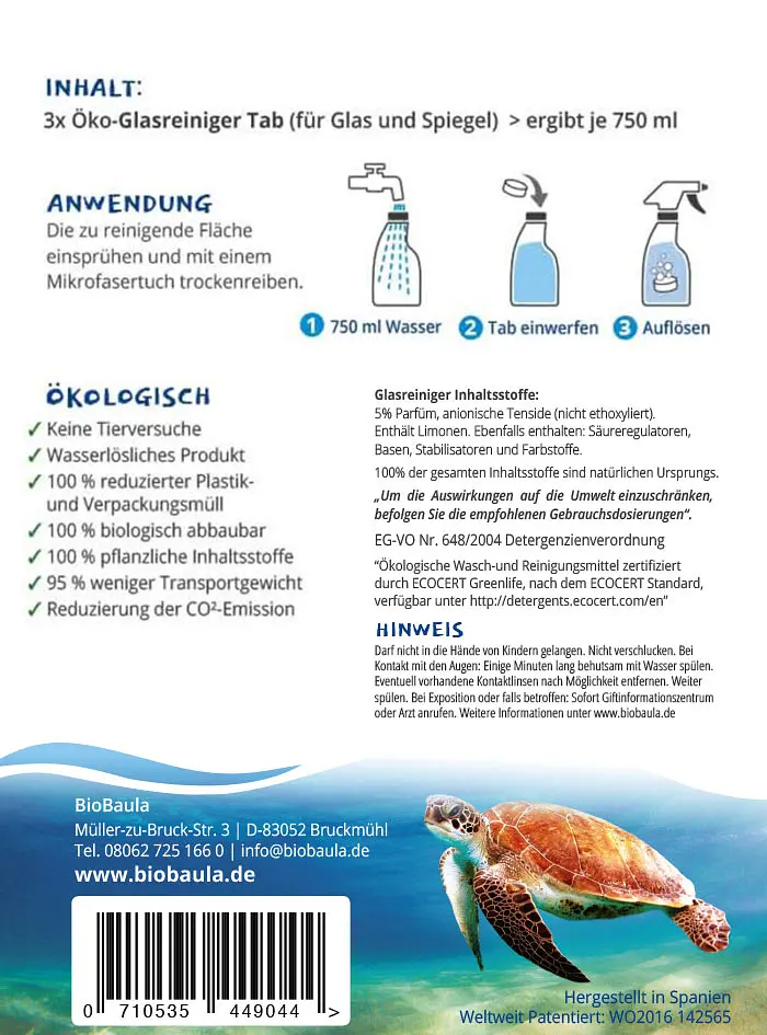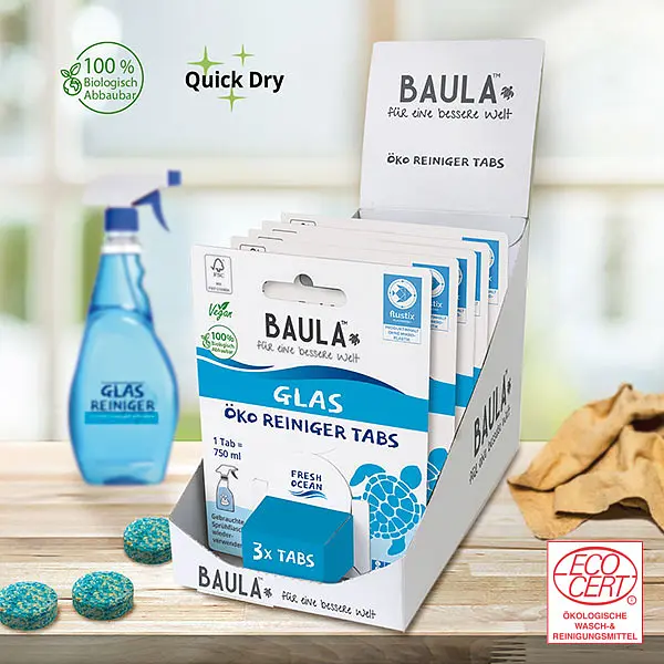Avec Biobaula , vous n’achetez que les pastilles de nettoyage et vous obtenez un détergent complet en ajoutant simplement de l’eau. De plus, tous les Biobaula tabs sont 100% biodégradables et écologiques.