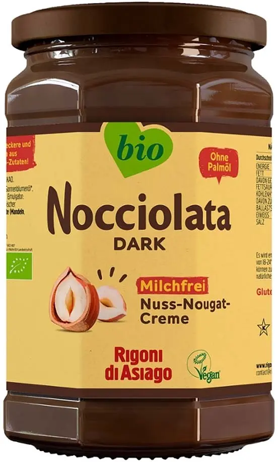 La Nocciolata Dark est la version élégante et sans lait de la célèbre pâte à tartiner italienne chocolat‑noisette. Avec 19,5 % de noisettes, du cacao maigre en poudre et une délicate vanille Bourbon, elle séduit par sa saveur riche et intense – élaborée sans huile de palme, uniquement avec de l’huile de tournesol douce.
