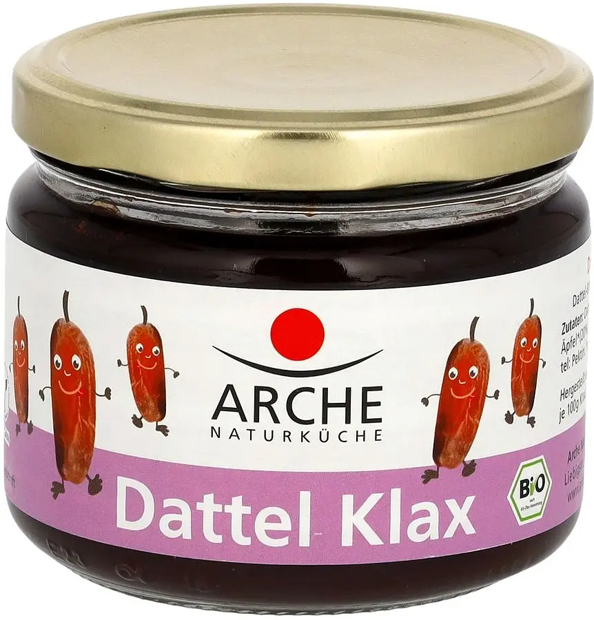Cette pâte à tartiner bio à base de dattes, de poires et de pommes est délicieuse sur du pain, avec des gaufres ou des crêpes… À propos – les « Klaxe » d’Arche sont des sirops traditionnels appelés « Kraute ». Le nom vient du « Rübenkraut » (sirop de betterave) et possède une longue histoire : à l’origine, les feuilles de betteraves étaient finement coupées et cuites comme du chou rouge en légume. Du sirop était obtenu en faisant réduire les betteraves, et dès le début du XVIIIe siècle on lui a donné le même nom.