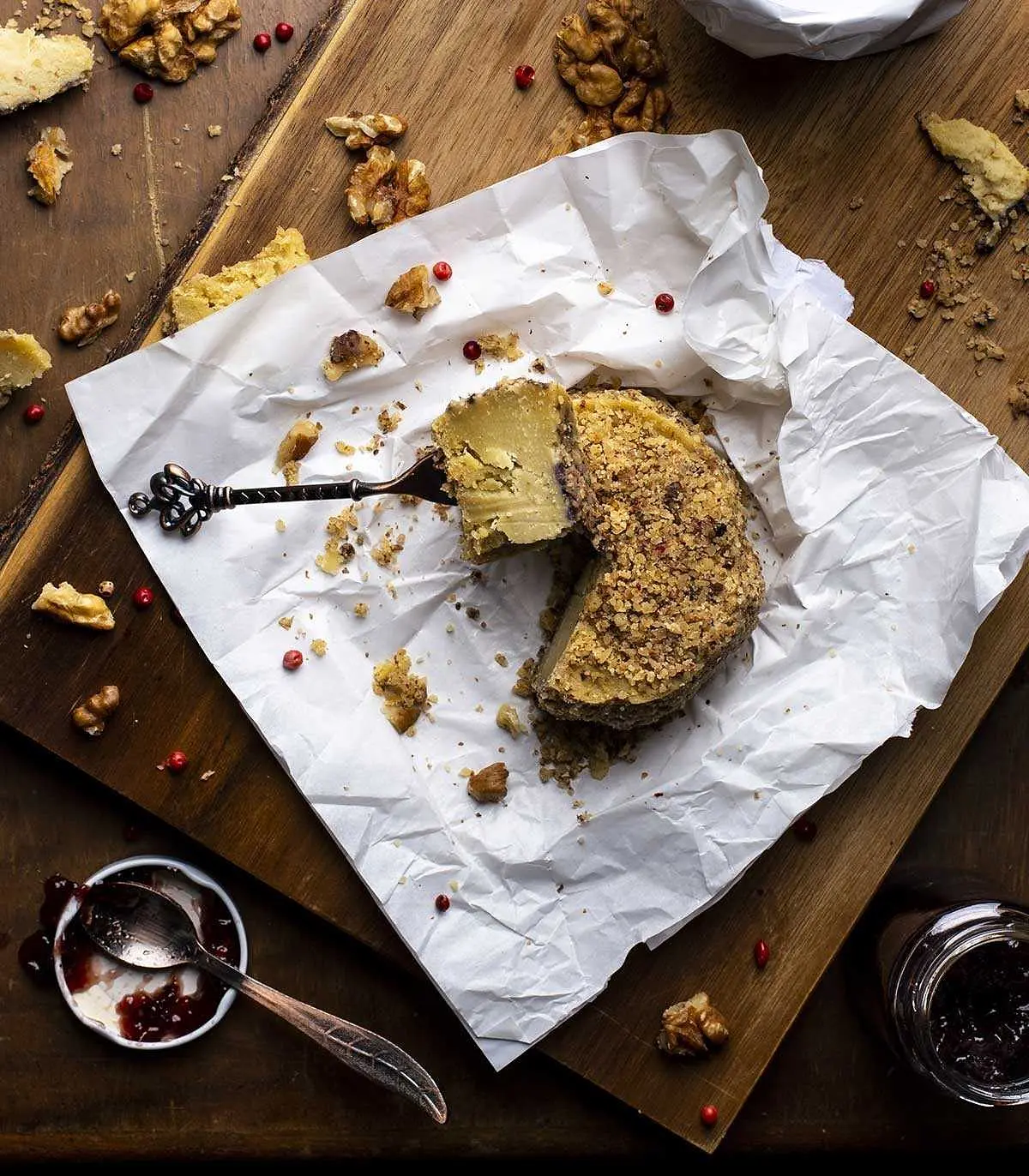 Vous êtes un amateur de noix ? Voici le Karmage, la spécialité vegan aux noix de Veggie Karma. Vous allez adorer le croquant des noix, associé à la texture douce et crémeuse. De temps en temps, une touche de poivre rose vous surprend – car la vie peut scintiller un peu. Nous affinons le produit 5 à 8 semaines pour obtenir un arôme optimal et une saveur corsée.