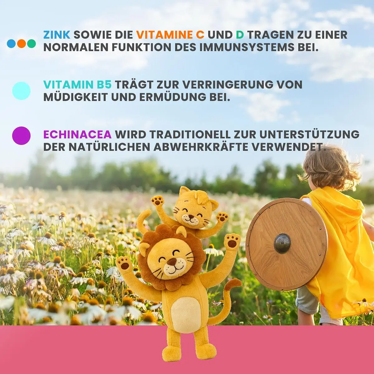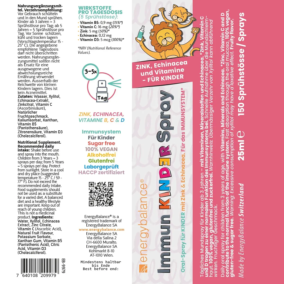 Sécurité pour les petits 100% vegan, sans gluten et sans additifs artificiels. Sans sucre, alcool, arômes artificiels ni colorants. EnergyBalance® n’utilise aucun ingrédient synthétique et préserve les propriétés naturelles des sources de vitamines. Idéal également en déplacement – sans eau et sans avoir à avaler. Développé et testé selon les normes HACCP – fabrication contrôlée en Suisse.