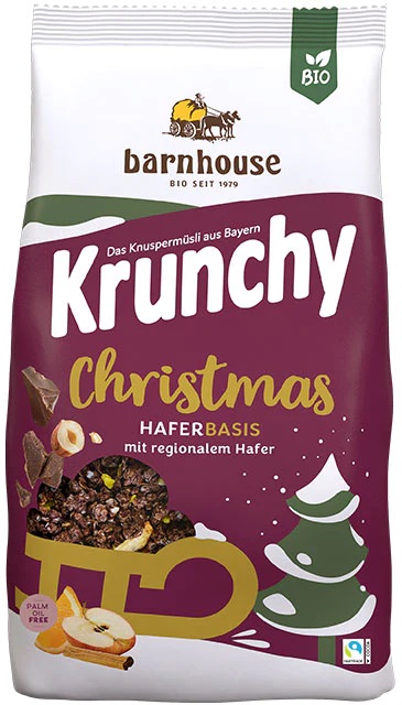 Barnhouse Krunchy Christmas - Das gab´s noch nie: Das erste Krunchy, das nach Weihnachten schmecktDas Krunchy Christmas ist da. Mit diesem weihnachtlichen Krunchy wollen Barnhouse euch auf die ruhige Zeit einstimmen. Mit dem knusprigen Hafer-Krunchy beschert Barnhouse euch weihnachtlichen Knuspergenuss mit all den typischen Aromen und Zutaten dieser wunderbaren Zeit.