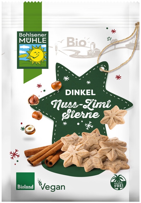 Bio Dinkel Nuss Zimt Sterne von Bohlsener Mühle – Mit Liebe gebackene KekseAus unserer Weihnachtsbackstube. Traditionelle Rezepte, besonders hochwertige Zutaten und viel Liebe zum Handwerk machen diese Produkte zu Keksen der ganz besonderen Art
