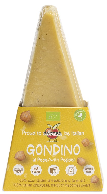 Gondino Pfeffer ist die pikante Variante der beliebten veganen Hartkäse-Alternative von Pangea Food. Auf Basis italienischer Kichererbsen hergestellt und mit schwarzem Pfeffer verfeinert, bringt er eine angenehm würzige Schärfe in deine pflanzliche Küche.