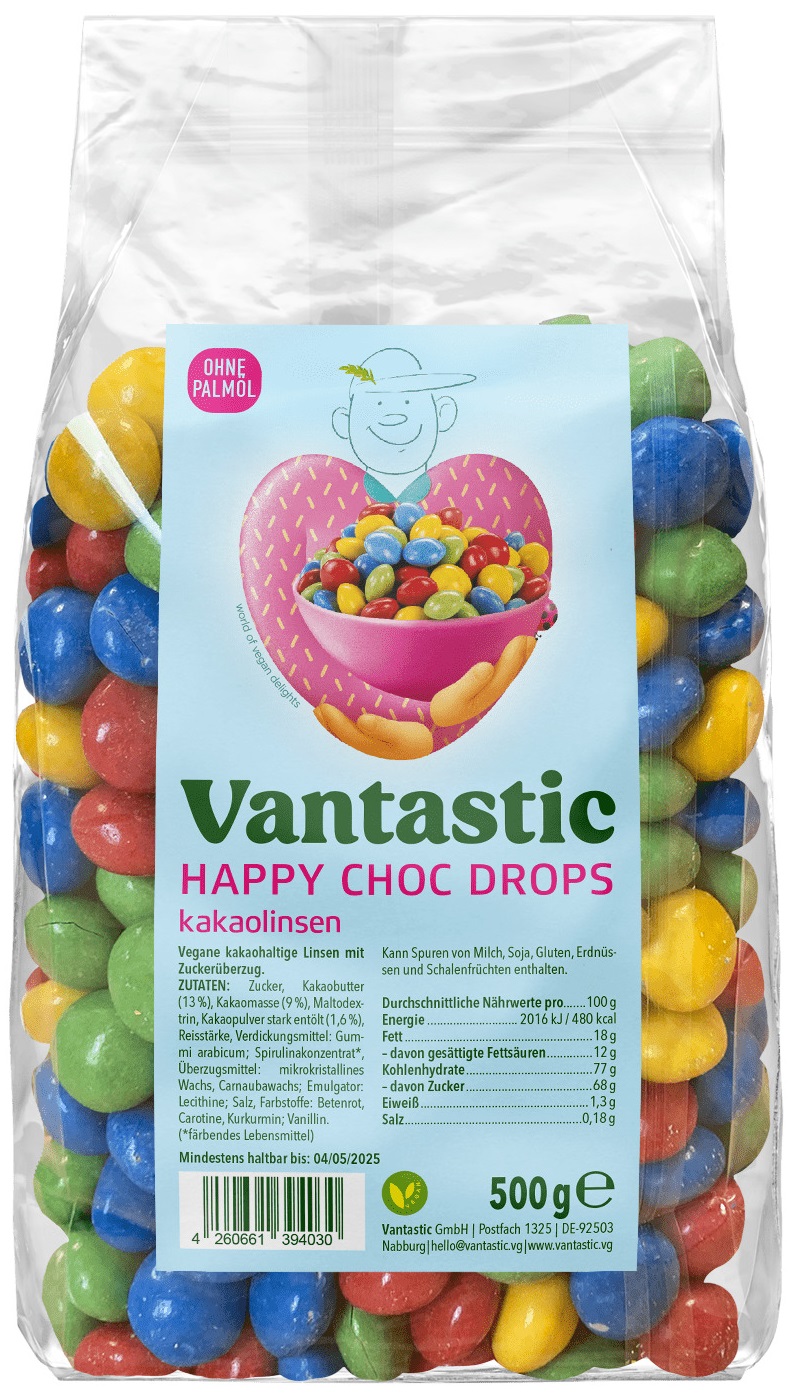 Mit den Vantastic foods Happy Choc Drops bringen wir dir einen weltweit beliebten Schoggi - Klassiker in deine Einkaufstasche - 100% vegan!