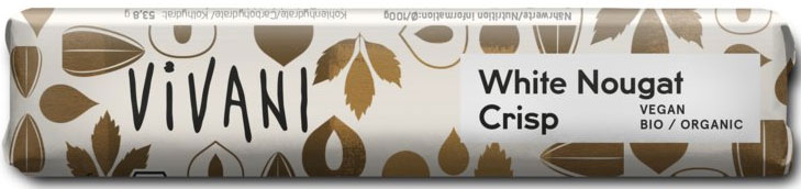 Bio Schokoladenriegel White Nougat Crisp von Vivani. » Von Natur aus glutenfrei - Kann jedoch Spuren von Gluten enthalten