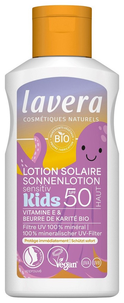This Sensitive Kids Sunscreen Lotion SPF 50 is specially formulated for the needs of young, delicate skin. Its 100% mineral UV filter provides broad-spectrum UVA and UVB protection right from the moment of application – with no chemical filters.