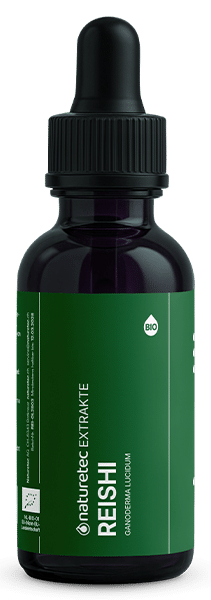 High-quality liquid extract from 100% fruiting bodies of the organic reishi mushroom, from controlled organic cultivation. It is produced without pressure or heat in order to preserve the natural ingredients as much as possible. Dual extraction with water and premium ethanol preserves the full spectrum of natural active ingredients.